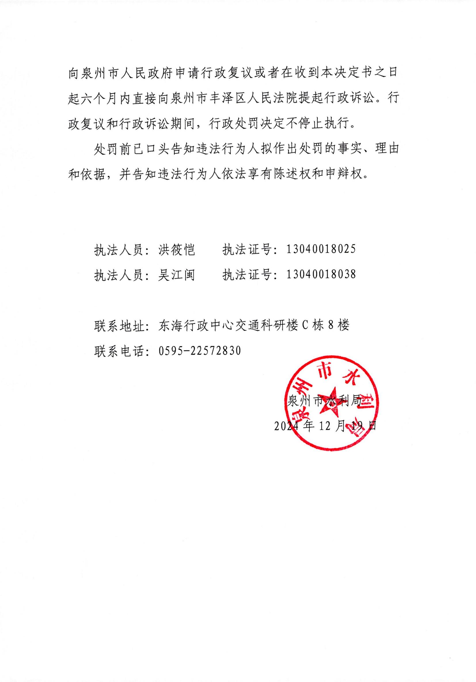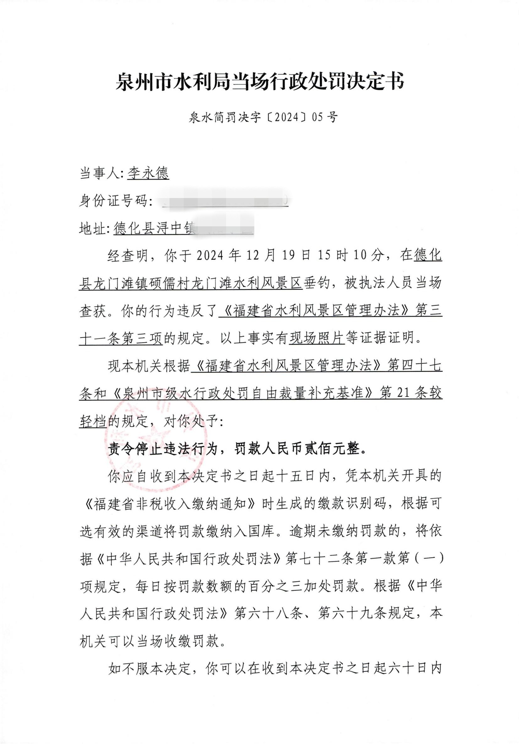 当场行政处罚决定书(泉水简罚字〔2024〕第05号)